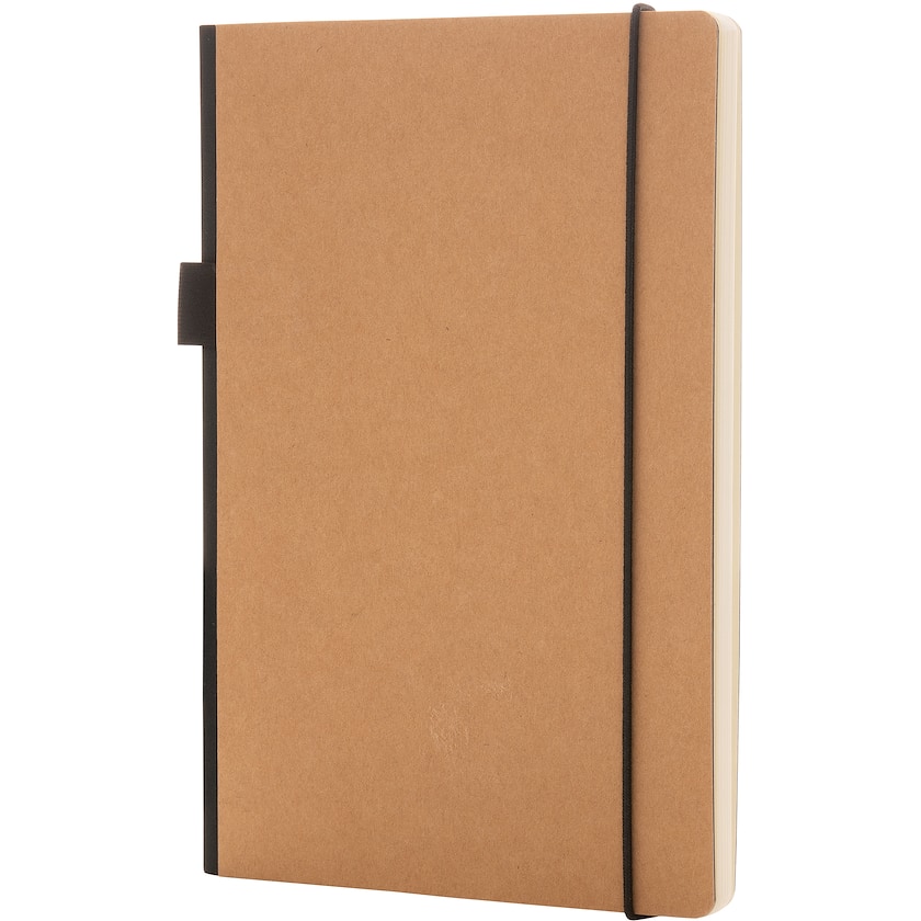 Kuminauhalla suljettava muistikirja FSC-merkitystä paperista. Kirjoitusvihkossa on 80 viivoitettua sivua, ja sen kovaan takakanteen on painatettu FSC-logo.