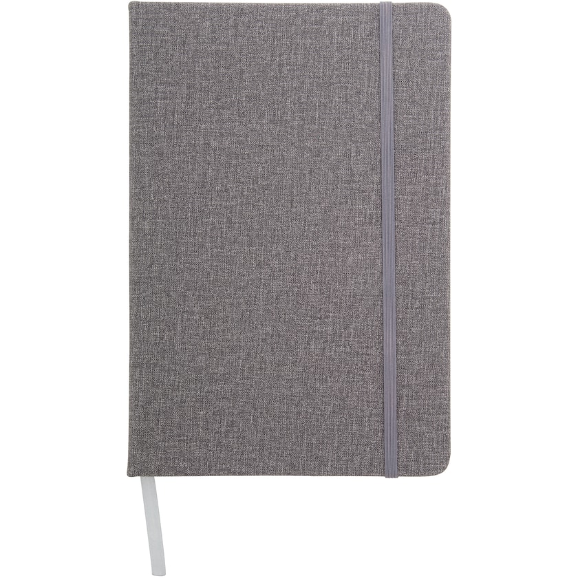 Kangaspintainen A4-muistikirja. Sisältää 80 viivoitettua sivua. Kuminauhakiinnitys. Painatus enintään kahdella värillä.