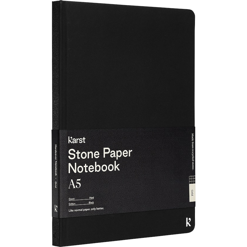 Ympäristöystävällinen Karst-muistikirja kovilla kansilla. Kirjan sivut on valmistettu kivipaperista, joka on materiaalina kestävä ja ympäristöystävällinen. Kirja sisältää 72 ruudullista lehteä.