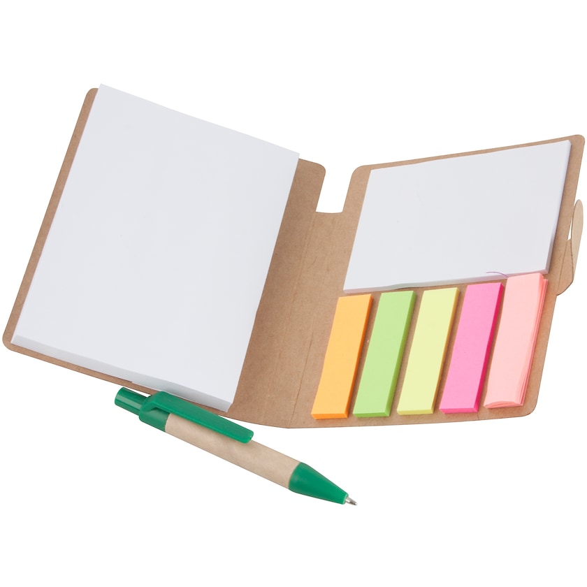 Lehtiö, jossa kirjoituslehtiö, teippimerkkejä ja kynä. Lehtiö ja kynä on valmistettu kierrätysmateriaalista. Painatus voidaan tehdä vain lehtiöön. Tilaa lehtiö teippimerkeillä Axon Profililta!