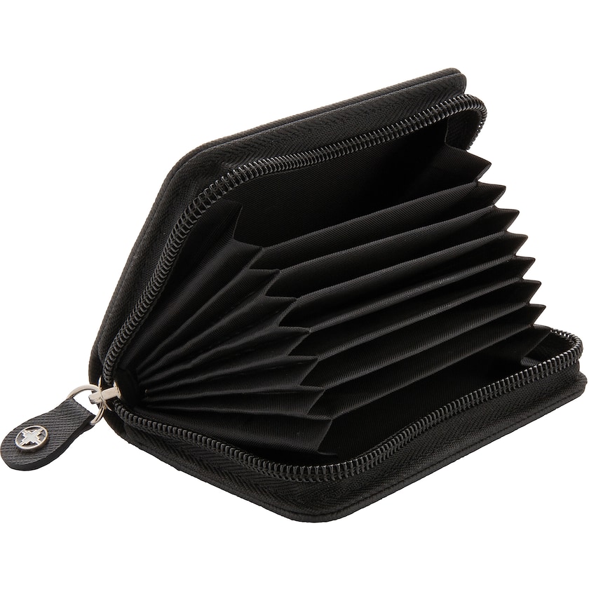 Elegantti korttikotelo valmistajalta Swiss Peak. Kotelossa on tilaa 10 kortille ja sen RFID-suojaus estää lähimaksuvarkaudet.