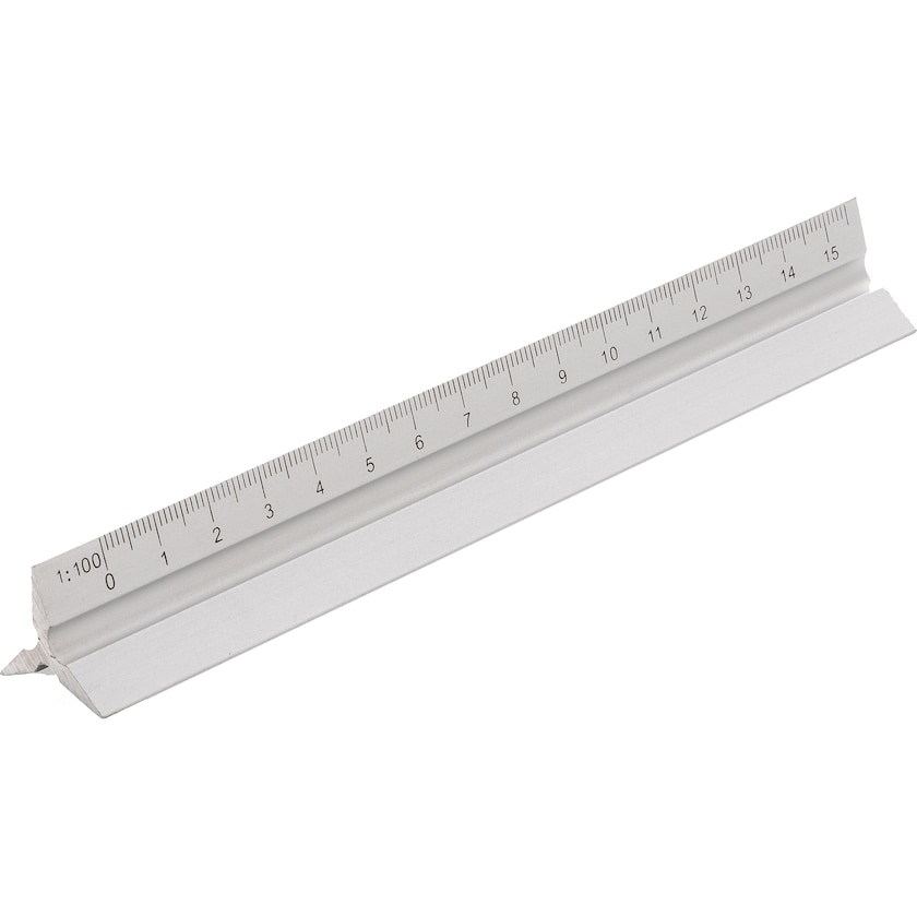 15 cm suhdeviivain viidellä eri asteikolla. Viivaimessa on asteikot 1:20, 1:25, 1:50, 1:75, ja 1:100. Yksi sivuista on tyhjä, jotta sen voi kustomoida painatuksella tai laserkaiverruksella.