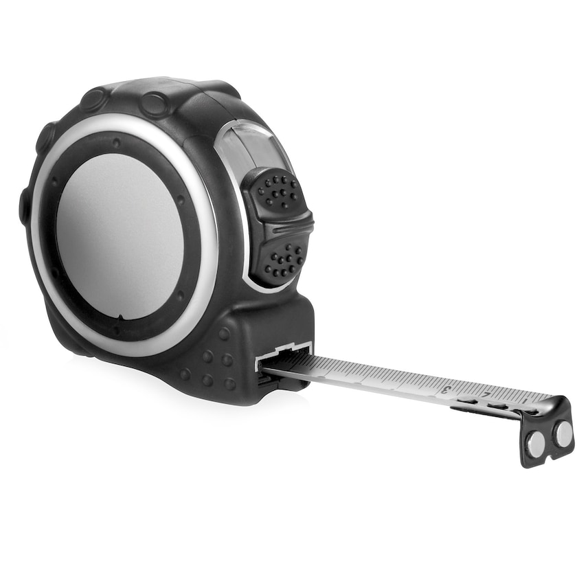 Futuristisesti suunniteltu mittanauha kumitetulla pinnalla. Vyökiinnike. Cross on saatavana myös 3-metrisenä.