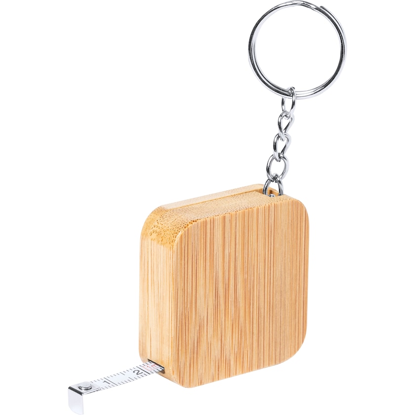 1 metrin mittanauha painatuksella tai laserkaiverruksella. Mittanauha on valmistettu bambusta ja siinä on avaimenperärengas.