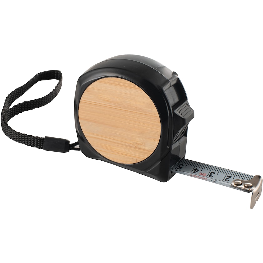5 metrin mittanauha kierrätetystä ABS:stä ja bambusta. Toimitetaan luonnonvärisessä pahvilaatikossa. Merkintä voidaan tehdä joko painatuksella tai laserkaiverruksella.