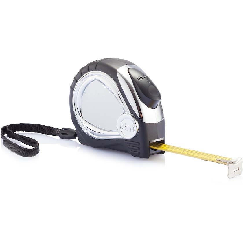 Laadukas kromattu 5-metrinen rullamitta. Scalassa on kumiyksityiskohtia, vyöklipsi ja rannenauha.