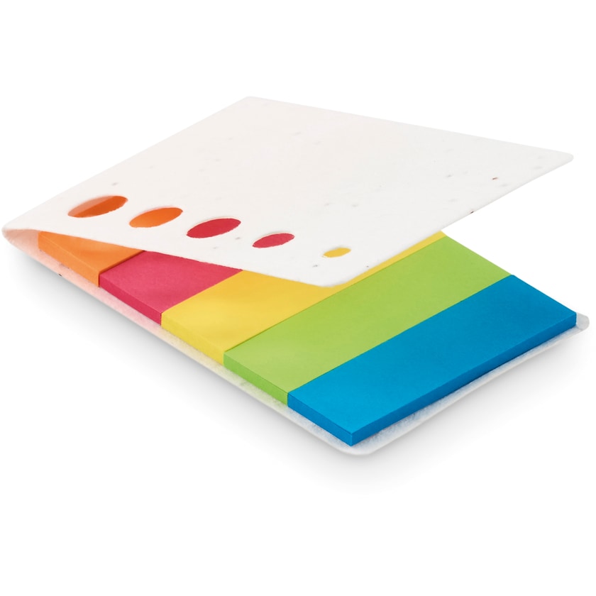 Teippimerkkisetti, jonka kannessa on silkkiunikon siemeniä. Setti sisältää teippimerkkejä viidessä eri värissä. Kun teippimerkit on käytetty, kannet voi istuttaa multaan, jolloin siitä kasvaa silkkiunikkoja.