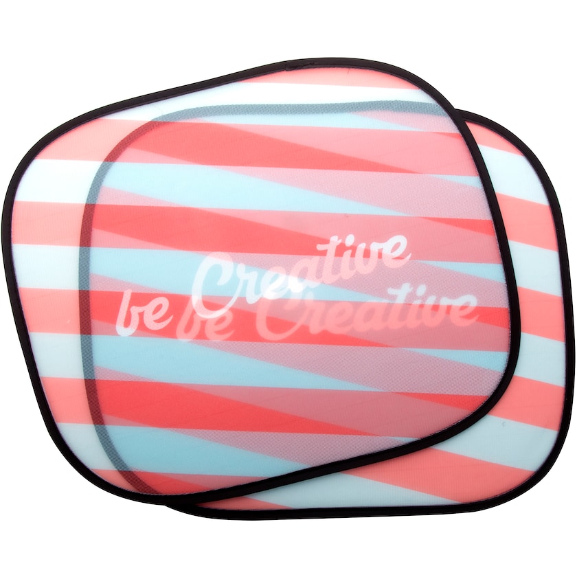 Kaksi aurinkosuojaa autoon. Painatushintaan kuuluu sama kuviointi molempiin suojiin. Toimitetaan imukuppien kanssa.