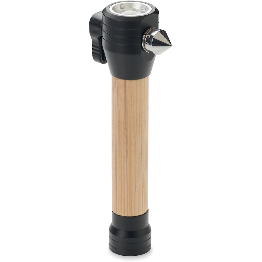Hätävasara yhdistettynä taskulamppuun ja vyöveitseen. Pohja on magneettinen. Taskulamppu toimii 2 kpl AAA-paristoja (eivät sisälly).