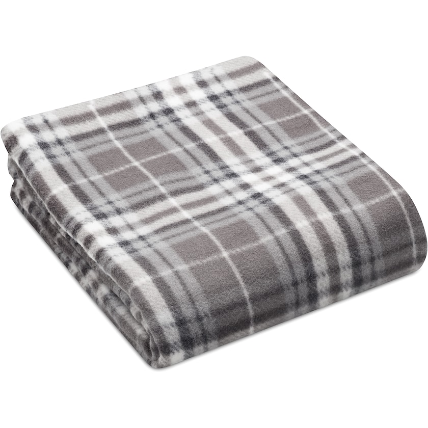 Ympäristöystävällinen viltti ruutukuviolla. Huopa on valmistettu rPET-kankaasta, eli kierrätetyistä PET-muovipulloista. Painatus tehdään mustaan säilytyspussiin.