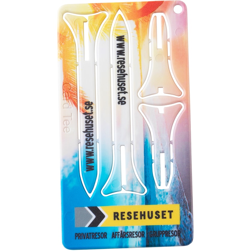 Muovikortti, josta voi rakentaa kaksi golftiitä. Täydellinen tapa tuottaa kutsut seuraavaan golftapahtumaasi! Muoviosat irroitetaan kortista, ja niistä kootaan kaksi 70 mm tiitä. Painatushinta koskee yksipuolista valokuvapainatusta.