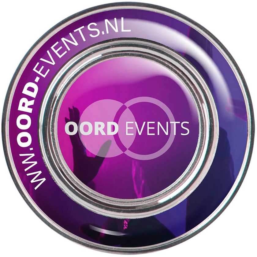 Metallinen merkkausnasta digipainatuksella. Painatus tehdään epoksipinnan alle, mikä tekee lopputuloksesta ylellisen näköisen. Koko merkkausnastan halkaisija on 40 mm ja irroitettavan nastan halkaisija 24 mm.