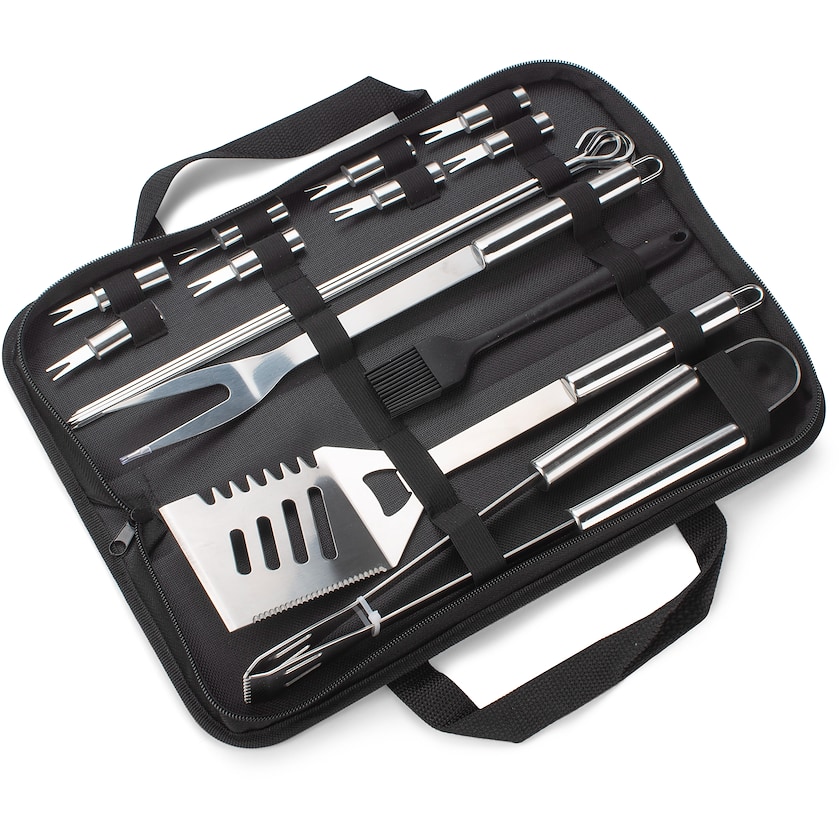 Monipuolinen grillisetti, joka sisältää kaiken tarvittavan grillausta varten. Setti toimitetaan kätevässä säilytyslaukussa. Painatus tehdään laukkuun. Täydellinen kesälahja!