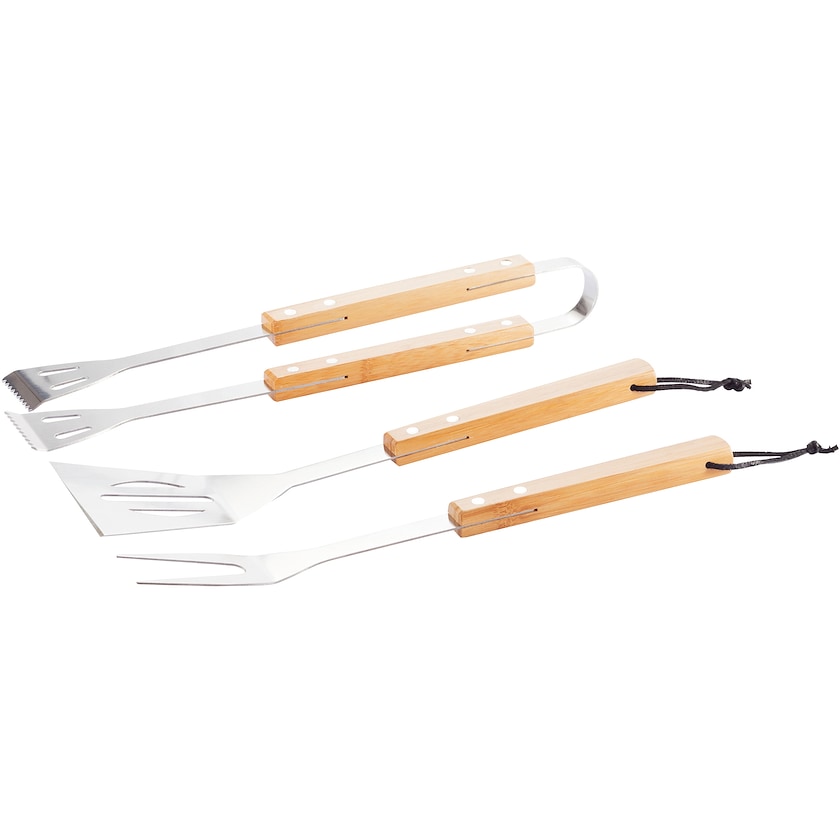 Mainio kolmiosainen grillisetti. Tuotteiden materiaalina on bambu ja ruostumaton teräs. Pakattu siistiin lahjalaatikkoon. Painohinta käsittää yhden keittiövälineen painatuksen.