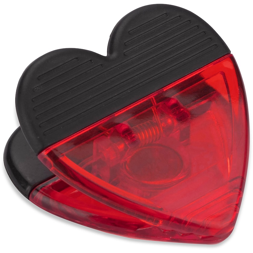 Sydämenmuotoinen magneetti painatuksella. Lovelyssa on vahva klipsi, johon mahtuu kuitit, liput yms.