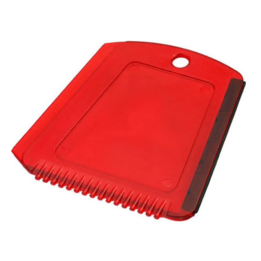 Siisti, läpikuultava jääraappa kumilistalla. Paljon värejä! Jääraapassa on sileä ja urallinen puoli lumen ja jään poistamiseen.