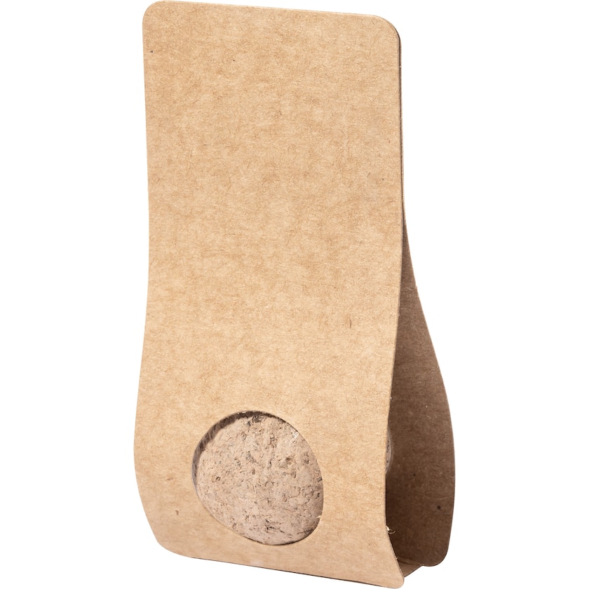 Kukkasiemenillä varustettu pallo, joka on kiinnitetty luonnonväriseen paperitelineeseen. Kukkien siemenet ovat sekakukkia. Paperitelineen takana on esipainatettu ohjeteksti. Painatus voidaan tehdä enintään kahdella värillä.