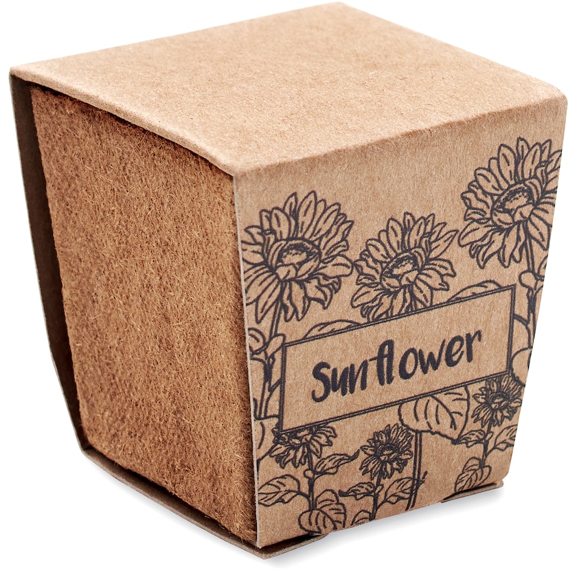 Biohajoava ruukku auringonkukansiemenillä. Mukana tulee maatabletti. Viljelysetti on valmistettu EU:ssa.