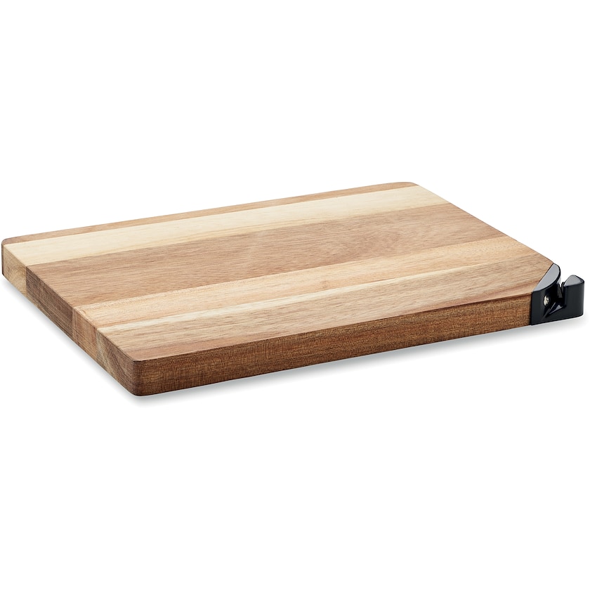 Ylellinen akaasiapuusta valmistettu leikkuulauta. Yhdessä kulmassa on käytännöllinen veitsenteroitin. Täydellinen lahja ruoanlaiton ystävälle.