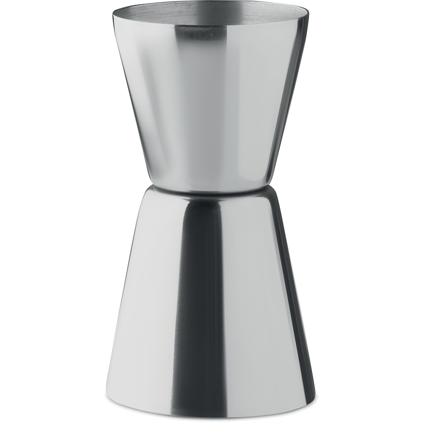 Ruostumattomasta teräksestä valmistettu juomamitta. Juomamitan tilavuudet ovat 25 ja 40 ml. Merkintä tehdään laserkaiverruksella.