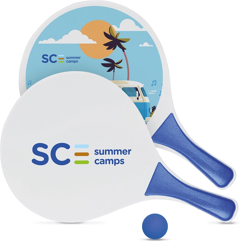 Rantatennissetti digipainatuksella. Painotekniikalla voi toteuttaa yksityiskohtaisia ja monivärisiä kuvioita. Painatushinta koskee yhden mailan painatusta. Täydellinen kesälahja!