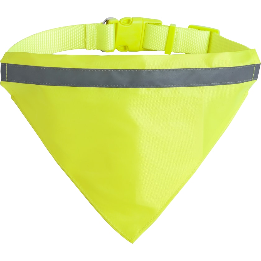 Koiran huivi huomiovärillä ja heijastimella. Kaikkien koiranomistajien arvostama lahja lisää näkyvyyttä pimeällä.