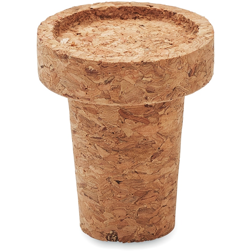 Aidosta korkista valmistettu viinipullon korkki. Merkintä tehdään laserkaiverruksella.