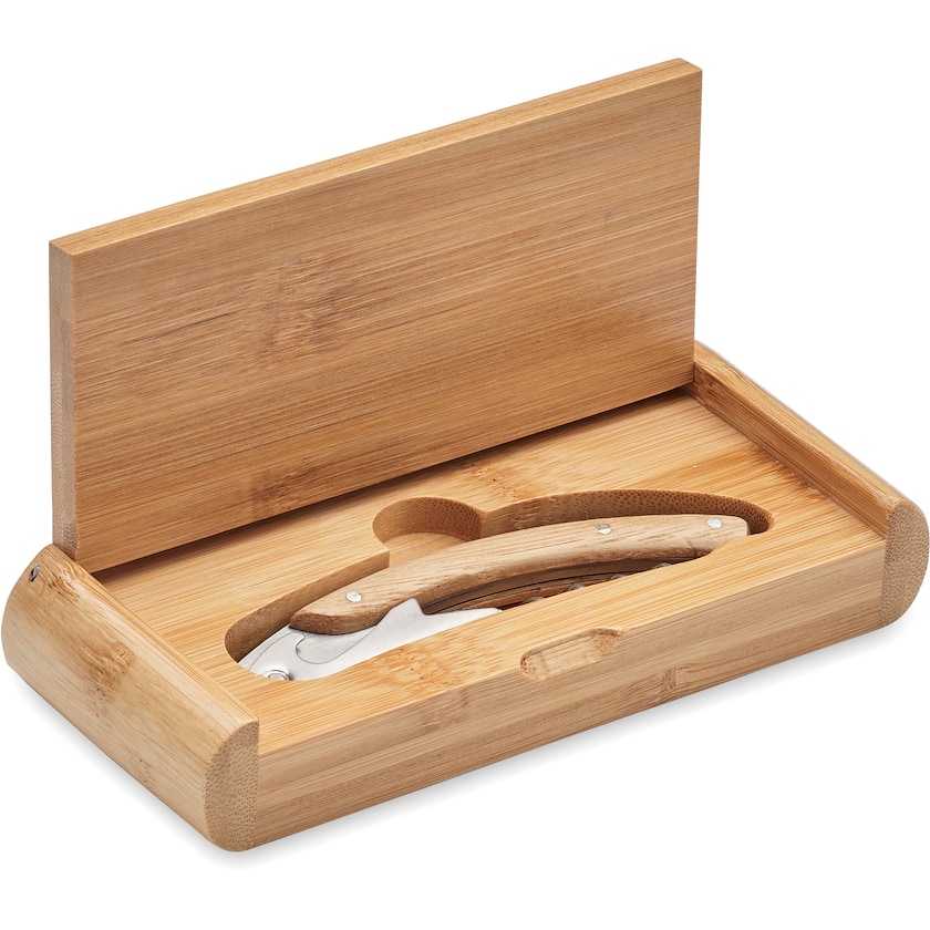Ainutlaatuinen viinipullonavaaja bambusta ja ruostumattomasta teräksestä. Toimitetaan bambulahjarasiassa.