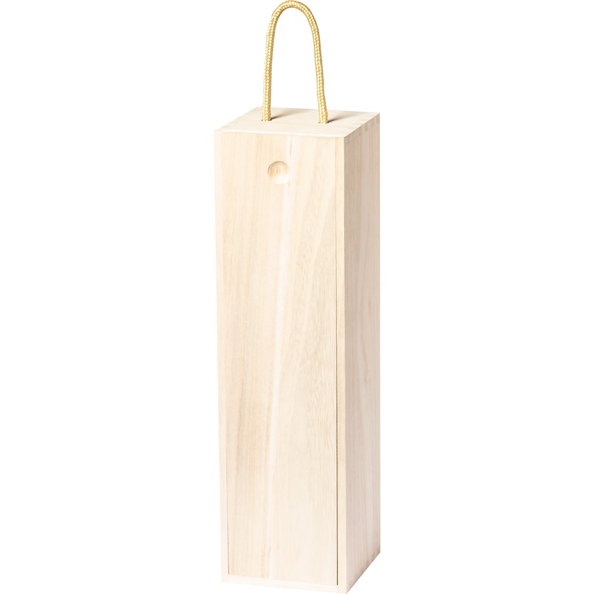 Hieno puinen viinilaatikko. Viinilaatikkoon mahtuu yksi viinipullo. Merkintä tehdään joko painatuksella tai laserkaiverruksella.