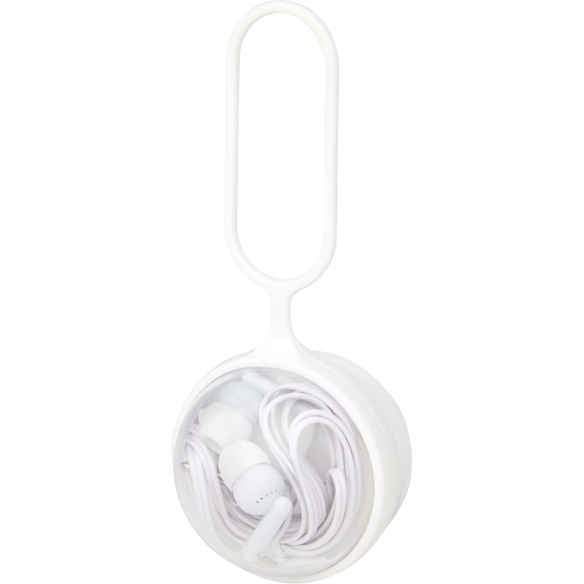 3-in-1 latauskaapeli ja kuulokkeet näppärässä kotelossa. Kotelo on varustettu silikonisella ripustuslenkillä. Kuulokkeissa on 3,5 mm liitäntä.