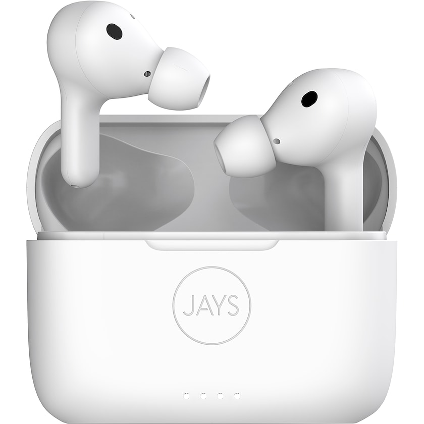 Huippulaadukkaat in-ear-kuulokkeet merkiltä Jays. Kuulokkeissa on loistava äänenlaatu ja melunvaimennus. 5 tunnin akunkesto. Lataus tapahtuu joko langattomasti tai säilytysrasiassa johdon avulla. Kuulokkeet on varusteltu mikrofonilla ja Siri voice control sekä Google Assistant -toiminnoilla. Mukana kolmet erilaiset kumipehmusteet. Painatus tehdään säilytysrasiaan.