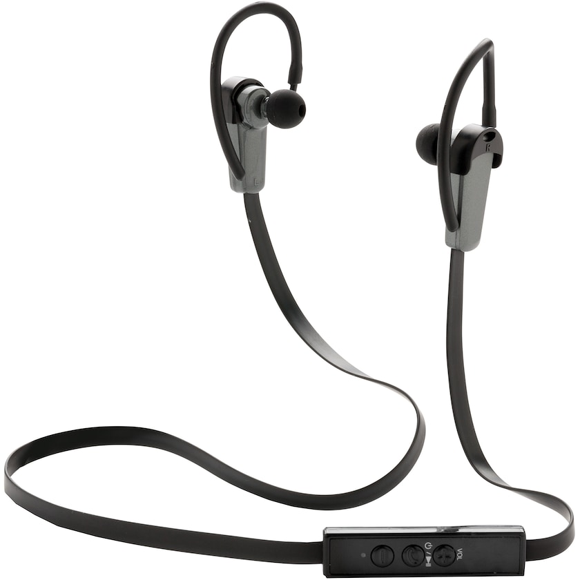 Langattomat Bluetooth-kuulokkeet, jotka pysyvät hyvin paikallaan, ja sopivat siksi hyvin vaikkapa lenkkipolulle. Nämä laadukkaat kuulokkeet on rakennettu kestämään hieman tavallista kovempaa menoa. Voit käyttää kuulokkeita yhdellä latauksella täyttä soittoa jopa neljä tuntia. Kuulokkeiden akku latautuu nopeasti, jo yhdessä tunnissa. Kuulokesetit toimitetaan yksittäispakattuina pahvilaatikoissa, pehmeisiin vetoketjullisiin Swiss Peak -säilytysrasioihin pakattuina. Mukana eri kokoisiin korviin sopivia sovittimia. Painatus tehdään kuulokkeiden pehmeään säilytysrasiaan.
