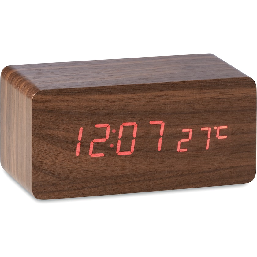Langaton laturi ja herätyskello. Haysville osoittaa myös sisäilman lämpötilan.