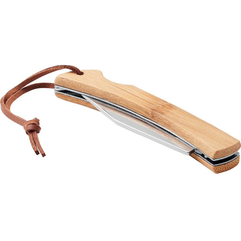 Taskuveitsi ruostumattomasta teräksestä ja bambusta. Loistava väline ulkoilijoille ja retkeilijöille.