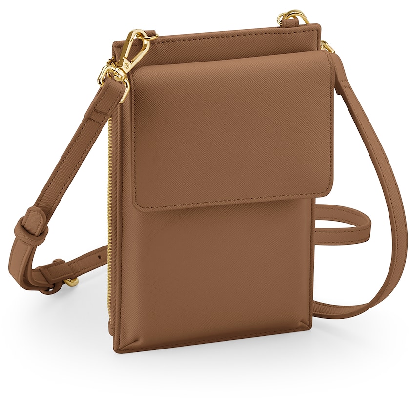 Ainutlaatuinen synteettisestä nahasta valmistettu puhelinlaukku. Täydellinen matkapuhelimeesi! Erityisen arvokkaita esineitä voi säilyttää vetoketjullisessa taskussa. Olkahihna on säädettävissä ja irrotettavissa.