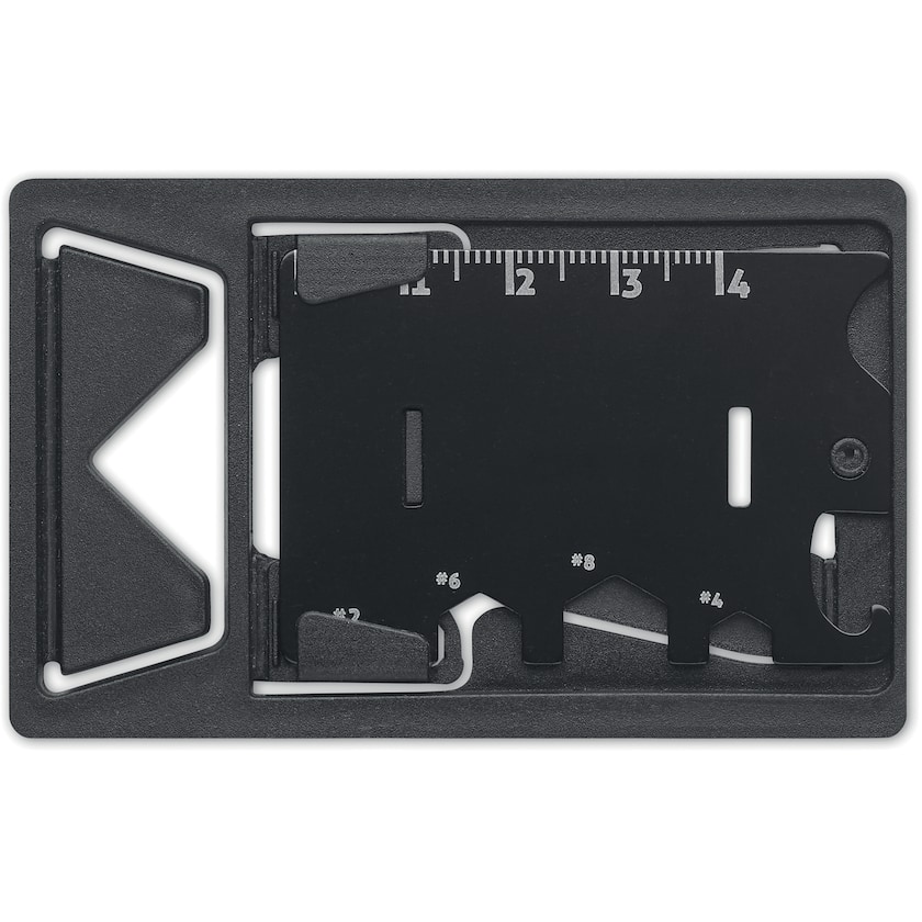 Ruostumattomasta teräksestä valmistettu puhelimen tuki kuudella lisätoiminnolla. Lisäominaisuuksia ovat viivain, kuusioavain, pullonavaaja ja ruuvimeisselit. Toimitetaan keinonahkaisessa kotelossa.