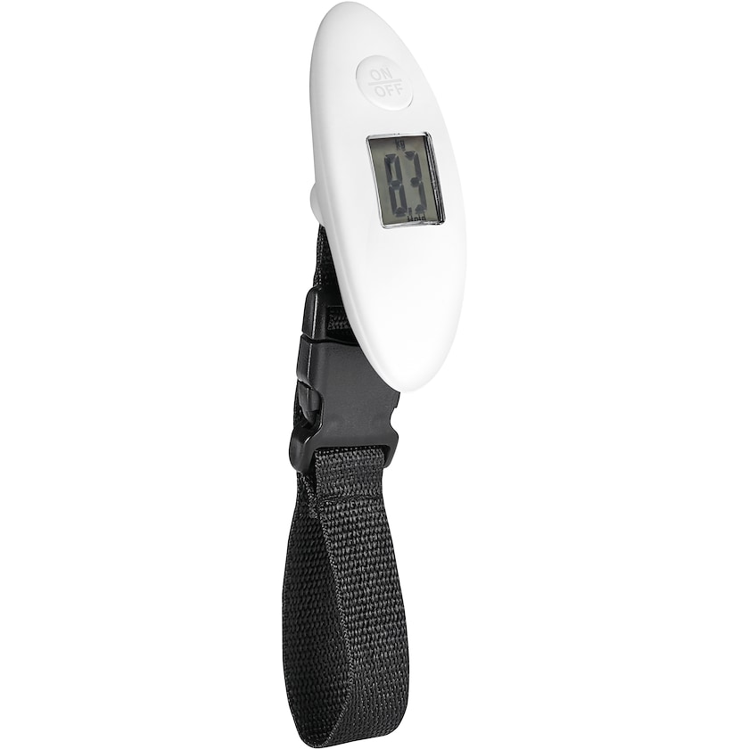 Digitaalinen matkalaukkuvaaka painatuksella. Maksimipaino 40 kg. Toimii yhdellä CR2032-paristolla (paristo kuuluu hintaan).