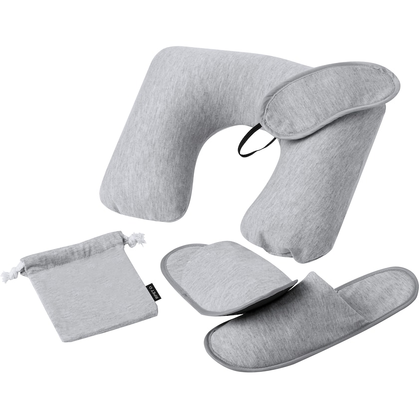 Matkustussetti, jossa kaikki tarvittava mukavaan matkaan. Tossut ovat kokoa "one size fits all" ja sopivat kokoihin 36-43.