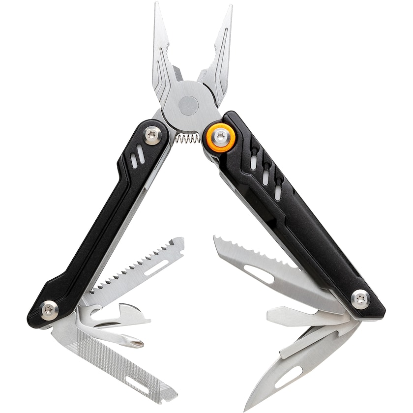 Laadukas 13 toiminnon työkalu. Tuote toimitetaan tyylikkäässä pakkauksessa. Työkalu on valmistettu alumiinista ja ruostumattomasta teräksestä.