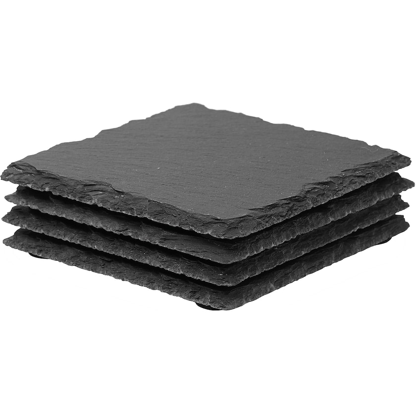 Ylelliset lasinaluset liuskekivestä. Setti sisältää neljä lasinalusta. Merkkaushinta sisältää painatuksen tai laserkaiverruksen yhteen lasinalusista. Painatus vain 1-väripainatuksena.