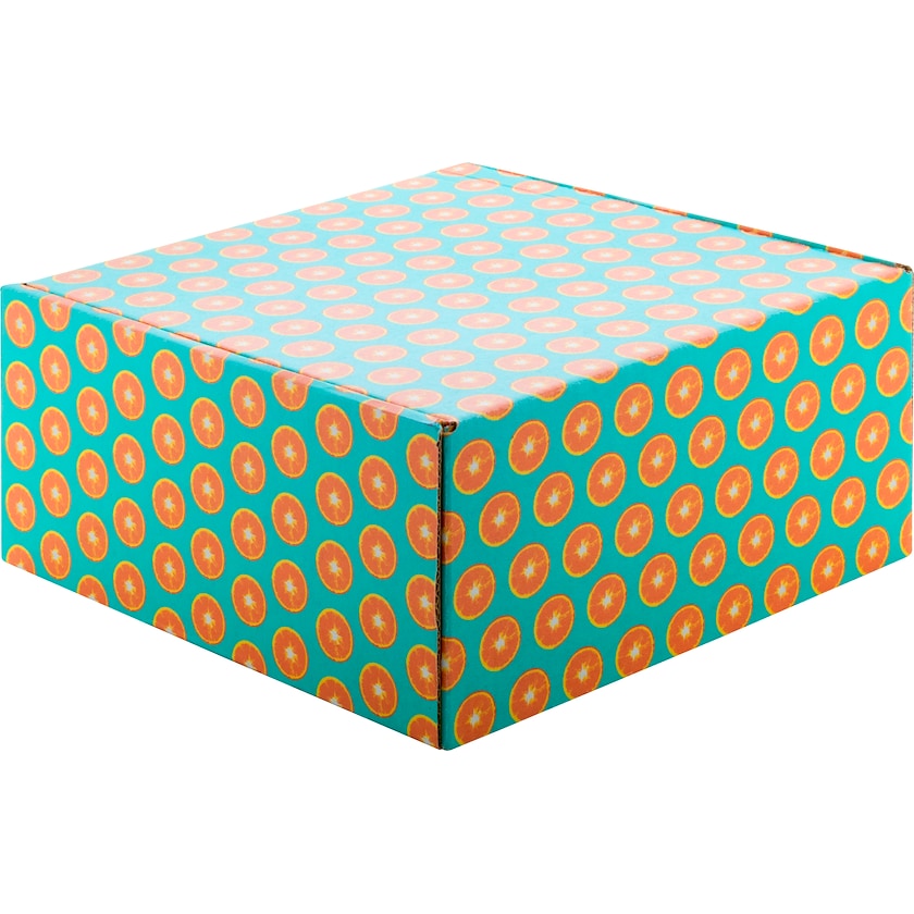 Iso neliönmuotoinen aaltopahvinen laatikko. Pakkauksessa on tarranauha, joka helpottaa sulkemista. Pakkauksen koko ulkopinta painetaan toiveidesi mukaisesti. Toimitetaan litteänä, eli koottamattomana.