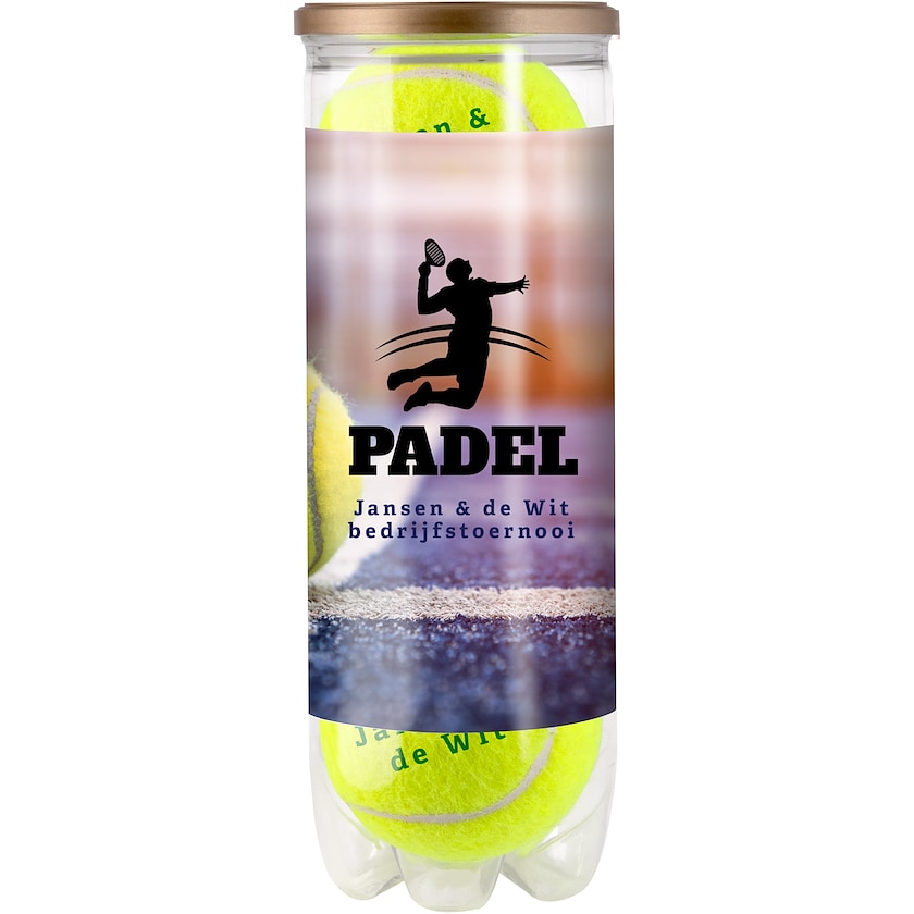 Padelpallot omalla painatuksella pakattuna kustomoituun pakkaukseen. Painatushinta sisältää painatuksen kaikkiin kolmeen palloon sekä muovituubin etikettiin. Kaasutäytteiset pallot on valmistettu Euroopassa.