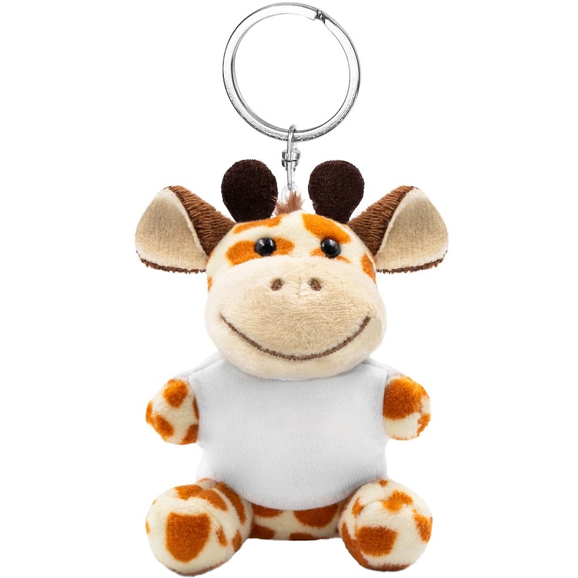 Söpö kirahvi avaimenperässä. Painatus tehdään pehmolelun t-paitaan. T-paidat toimitetaan erikseen.
