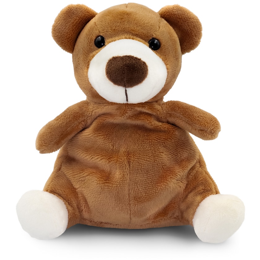 Nalle pehmokankaasta. Painatus tehdään masuun. Sisällä olevien pienten pallojen ansiosta nalle pysyy istuma-asennossa.