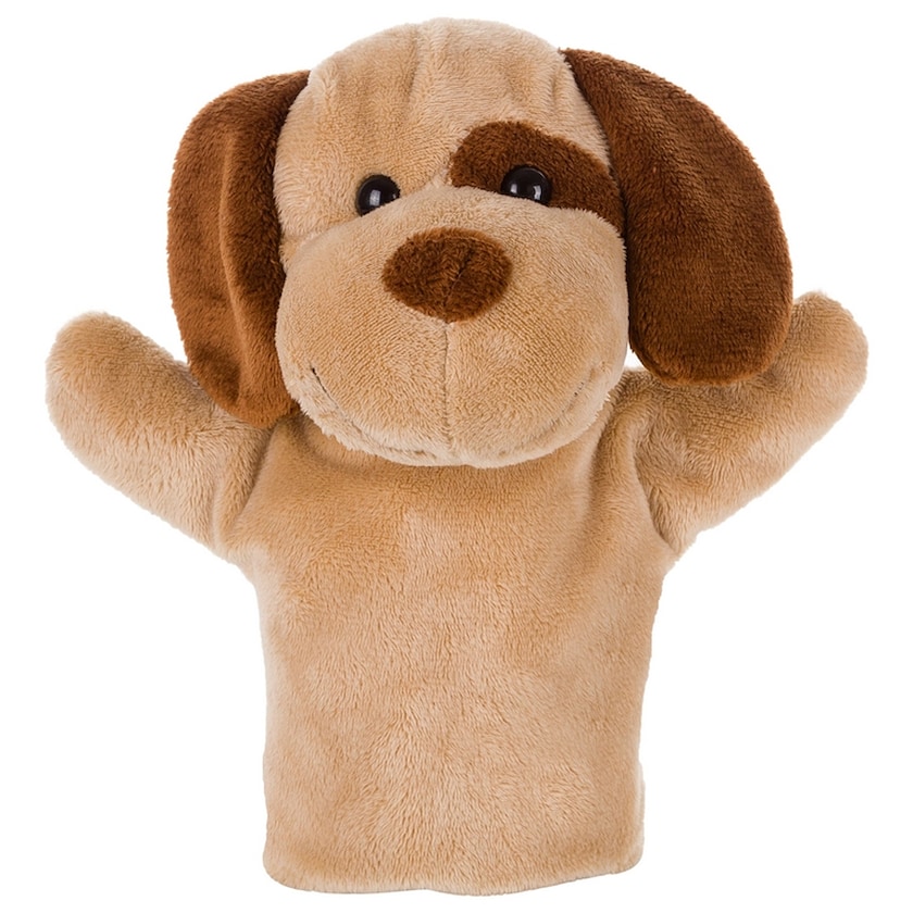 Koiran muotoinen käsinukke. Painatus tehdään koiran rintaan. Hauska lahja kaikille koiraihmisille.