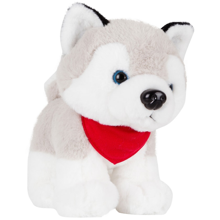 Hieno pehmolelukoira, joka näyttää siperianhuskylta. Painatus tehdään koiran kaulaliinaan (liinat toimitetaan erikseen pakattuina). Suloinen lahja kaikille koiraharrastajille!