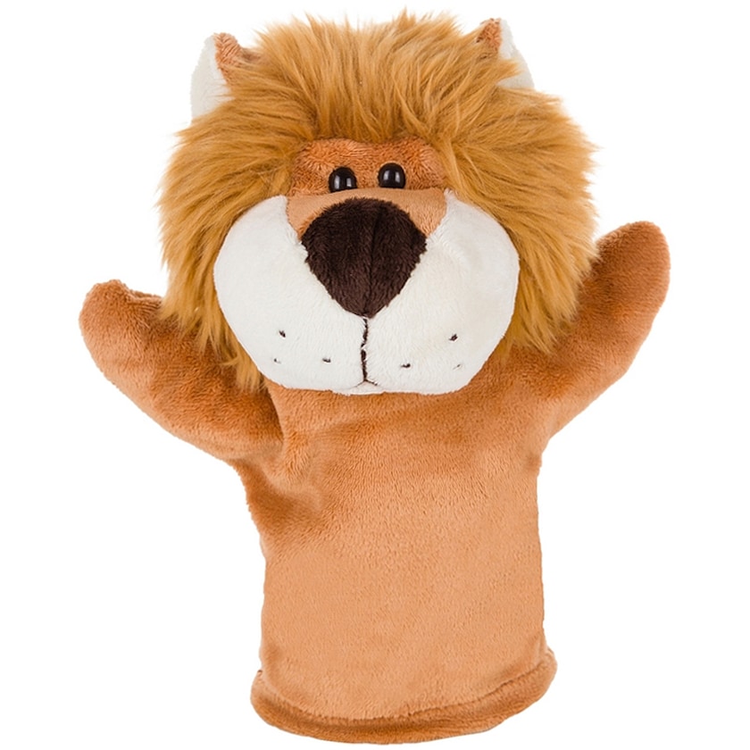 Leijonan muotoinen käsinukke omalla logolla. Painatus tehdään leijonan rintaan. Luova mainoslahja lapsille.