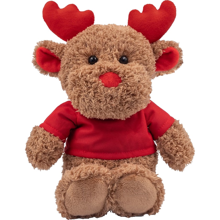 Poro, jonka punaiseen t-paitaan tehdään painatus. T-paita pakataan erilleen porosta. Mukava lahja lapsille joulun aikaan.