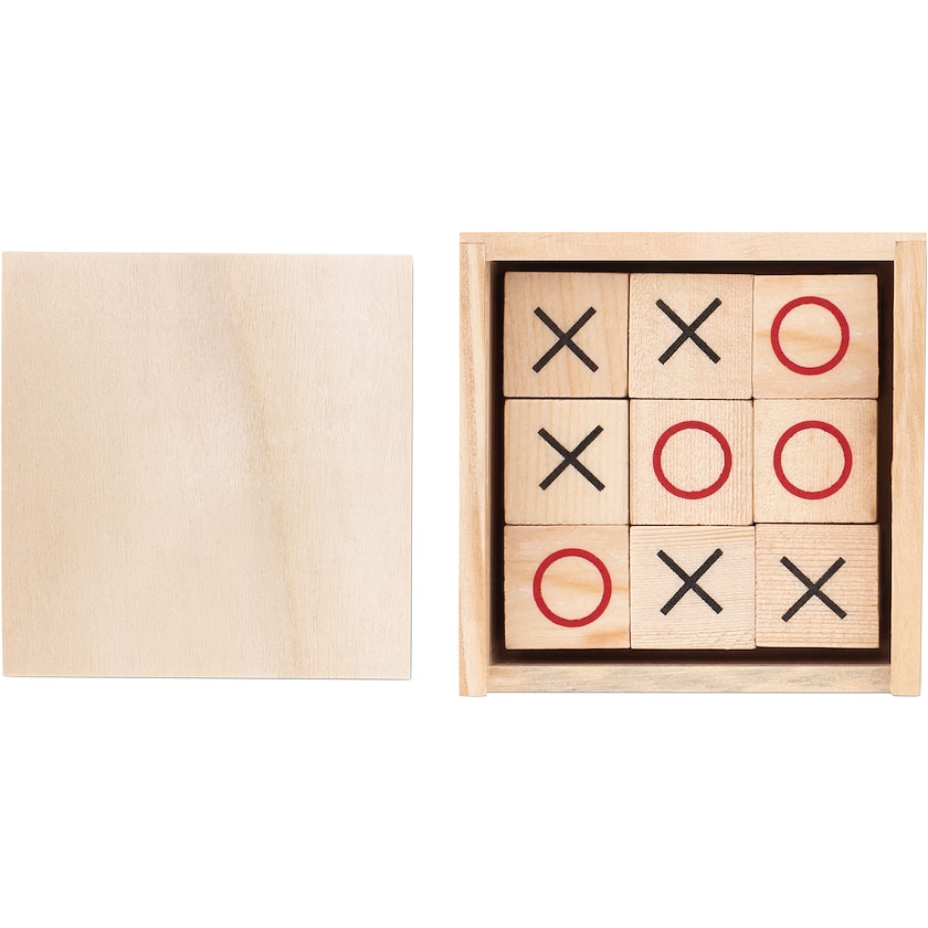 Ristinolla puisessa säilytyslaatikossa. Merkkausvaihtoehtoina painatus ja laserkaiverrus. Ristinolla on klassikkopeli, joka on viihdyttänyt ihmisiä vuosisatojen ajan.