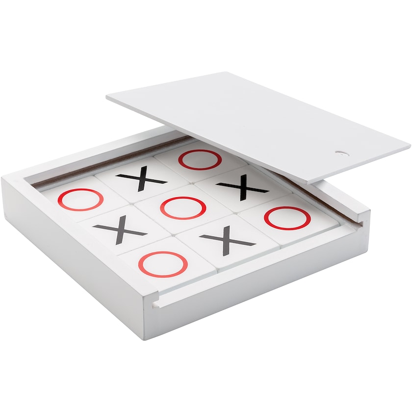 Puinen ristinolla-peli. Pieni ja kevyt peli on kätevä ottaa mukaan matkoille.